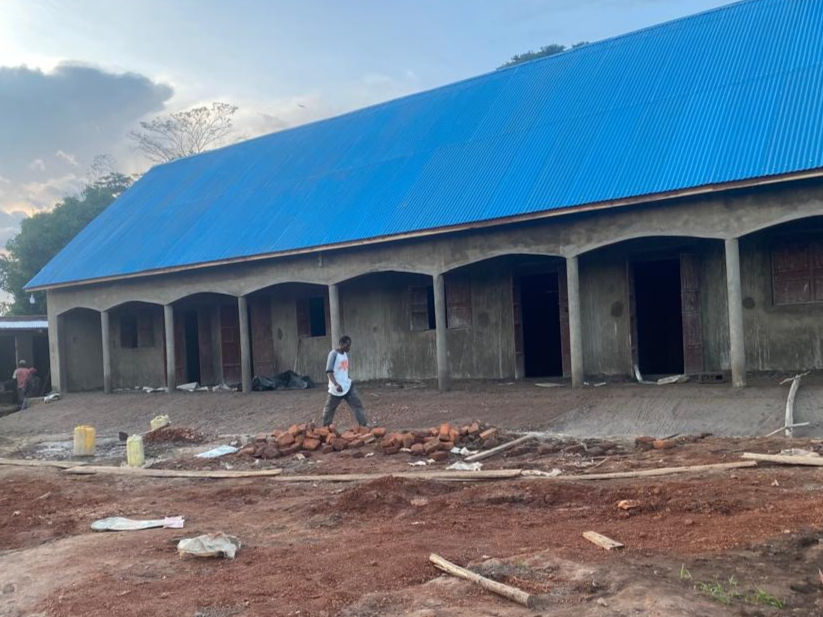 Vor 5 Wochen, am 23. Februar 2026, wurde mit der Rodung des neu erworbenen Grundstücks begonnen. Nach einer Woche waren die Bauarbeiten an Toilettenanlage und Haus bereits voll im Gang. Und jetzt steht das erste Gebäude bereits und ist am Austrocknen. Auch die Toilettenanlage ist fertig. Für diese musste ein rechteckiges Loch von 18 m Tiefe in den Boden gegraben werden. Der oberste Meter des Lochs wurde dann gemauert und so stabilisiert. Darauf kamen dann drei Waschkabinen und vier Plumpsklos. Da Wasser ein kostbares Gut ist wird auch hier das Regenwasser der Dächer aufgefangen und in einem 10'000 Liter Tank gesammelt.
